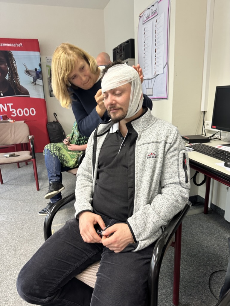 In der Schulung ging es um die verschiedensten Themen, die alle für einen Einsatz sehr wichtig sind. Hier auf den Fotos sieht man z.B. das Sicherheitstraining und wie man Erste Hilfe leistet.