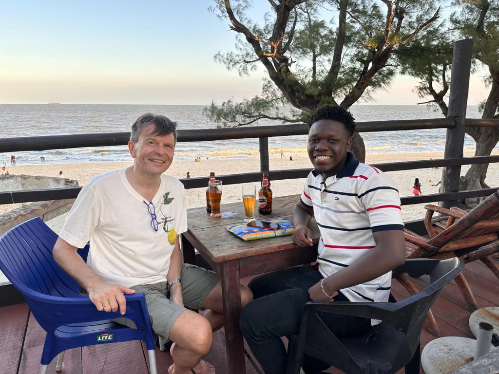 Nach einem guten halben Jahr Sprachtraining war mein Portugiesisch bei meiner Ankunft in Mosambik dann tatsächlich flüssig. Das habe ich mit Paulo bei unserem ersten Treffen in Beira gefeiert: